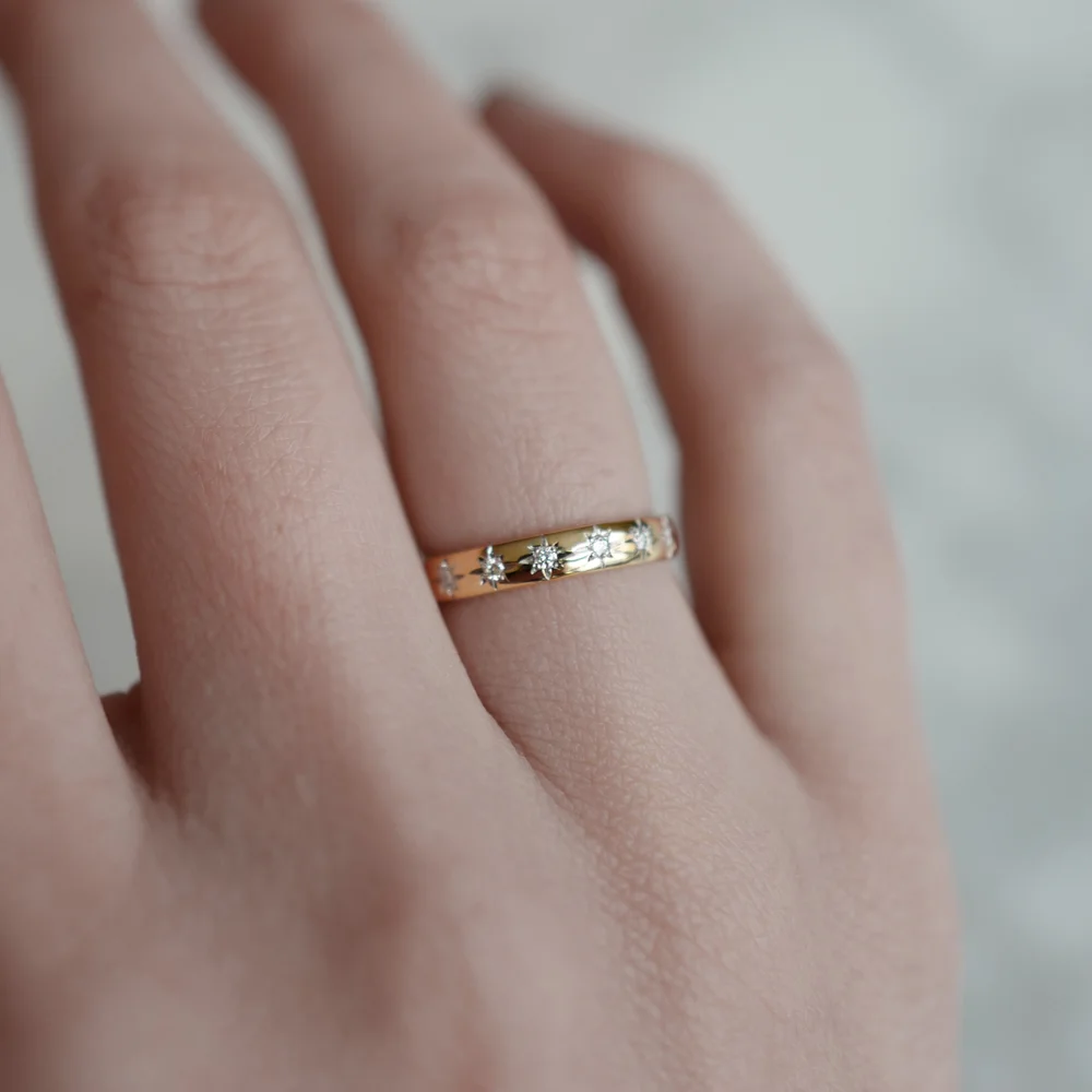 Engraved Star Band 9k Gold Vintage Vintage Paris Jewelry